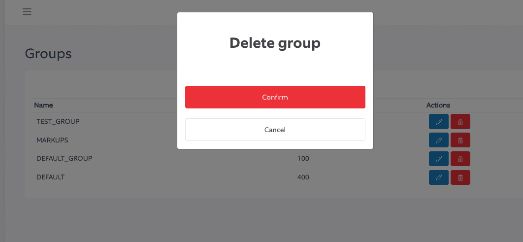 Gruppen können jetzt gelöscht werden. Sollten noch Geldbörsen der Gruppe zugewiesen sein, die gelöscht wird, werden sie der Standardgruppe erneut zugewiesen. Wenn Sie die Standardgruppe löschen möchten, müssen Sie zuerst eine neue Standardgruppe unter Einstellungen -> Onboarding auswählen.