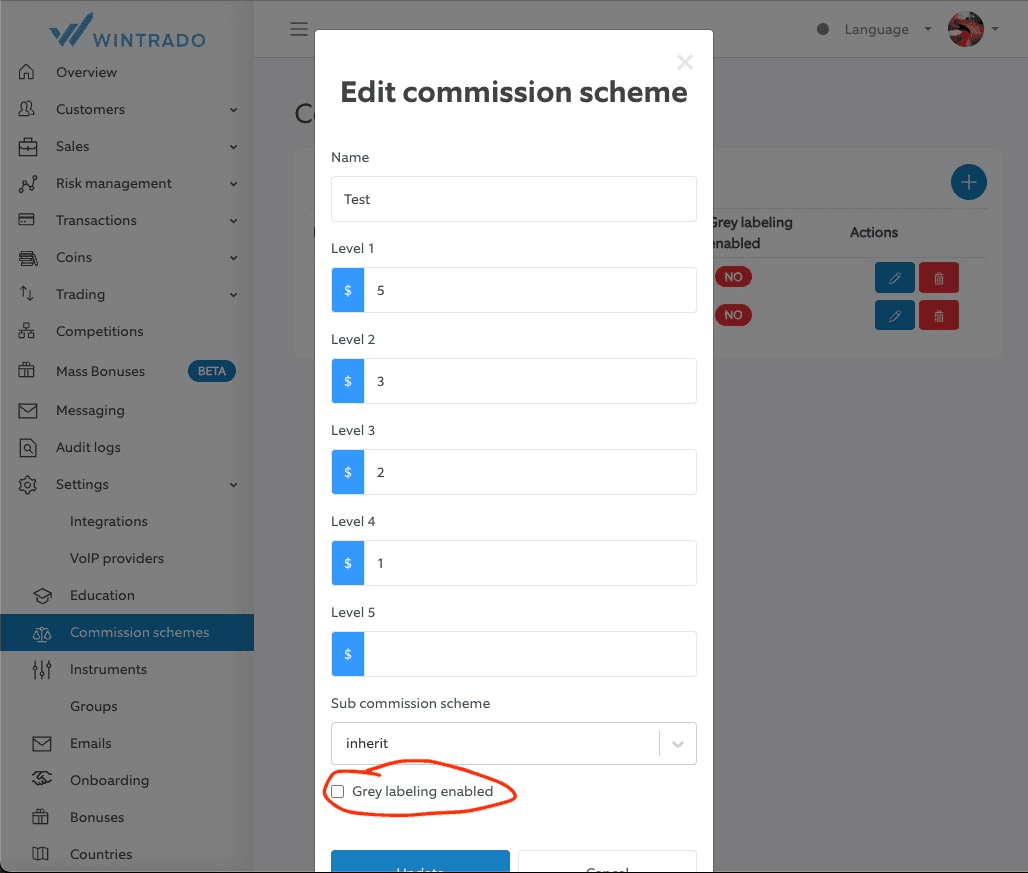 Damit das Feature überhaupt verfügbar ist, muss es zunächst im für den IB/Affiliate zugewiesenen Provisionsschema konfiguriert werden: